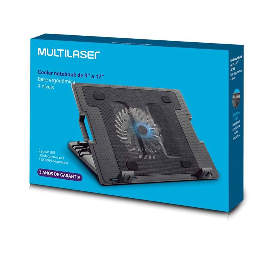 A base para notebook com 1 cooler + 2 portas USB da Multi é um acessório muito útil para quem precisa utilizar o notebook por longos períodos de tempo.